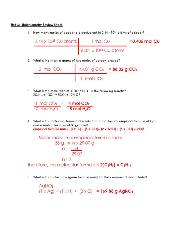 Key Unit 5 Stoichiometry Test Reveiw Pdf Mole Unit Stoichiometry